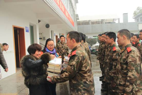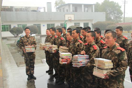 2015年3月11日,天空下着毛毛细雨。湘潭市图书馆流通部工作人员和龚馆长、成馆长一起,将精心挑选的75本图书和100本期刊,送到武警部队湘潭市中队,受到武警官兵的热烈欢迎。