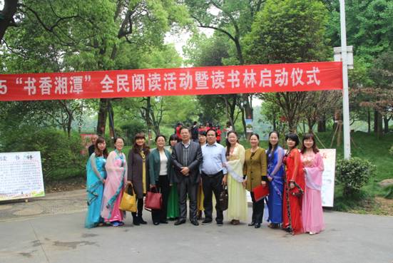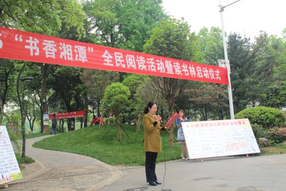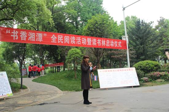 4月23日,在第二十个世界读书日,湘潭市图书馆(少儿图书馆)在雨湖公园举办2015“书香湘潭”全民阅读活动暨雨湖“读书林”启动仪式,倡导全民阅读,建设学习型社会。