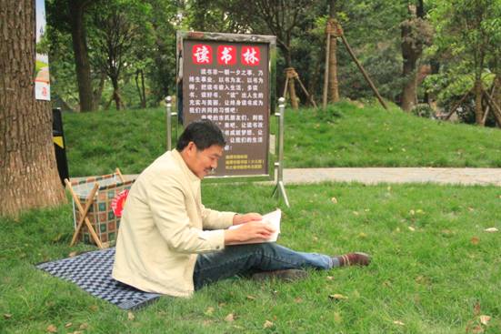 “读书林”坐落在湘潭市雨湖公园葱郁的草地上,是湘潭市首家户外读书活动场地。由湘潭市园林局、湘潭市图书馆、湖南科技大学商学院志愿者团队联合建设、管理。它的成立旨在推进全民阅读,建设书香湘潭,营造崇尚读书浓厚氛围。在阳光明媚的日子里,邀上三两好友,围坐在草地上,沐浴在树叶中洒下的金色阳光里,捧上书卷, 在轻柔的音乐中,文学的海洋里,亲近书香,洗去些浮躁,沉淀些岁月,放飞自己的灵魂吧!让我们在鸟语花香、暖意融融的氛围中,享受美好的生活时光,增长知识、提升修养、丰富人生,提升城市文明。图书馆将向读书林长期供书,不定期举办各种读书活动,欢迎广大的市民朋友们参加。