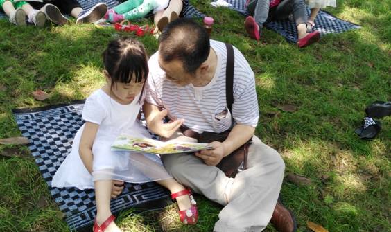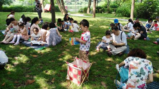 在这个阳光明媚的日子里,孩子们席地而坐,沐浴在树叶中洒下的金色阳光里,手捧绘本故事书,在欢快的音乐中,与家长一起唱儿歌、诵童谣,参与“爱的抱抱”等游戏,听幼儿园的老师讲《爷爷一定有办法》等绘画故事,开心地分享阅读的快乐。在这个重要的节日里,家长和孩子们以书为友,启智修德,共同感受亲子阅读的乐趣与魅力,共同享受美好的亲子阅读时光。