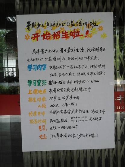 为丰富广大中小学生暑期生活,提高科技人文素养,激发同学们的学习热情,发挥图书馆精神文化教育阵地的作用,我馆特举办暑期少儿电脑知识公益免费培训班。