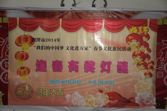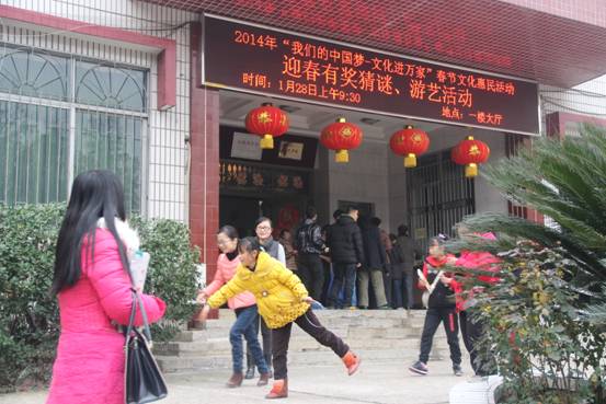 1月28日上午,我馆一楼大厅热热闹闹、一条条灯谜将把一楼大厅装点得五彩缤纷,第五届莲城读书月系列活动“我们的中国梦·文化进万家”之迎春有奖灯谜及游艺活动在此举行。