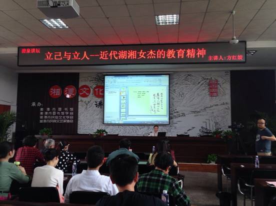 “巾帼不让须眉”,4月18日,一场题为《立己与立人——近代湖湘女杰的教育精神》讲座在市图书馆三楼多功能报告厅举办。此次讲座为湘潭文化讲坛第七讲。我馆特邀中国社会科学院哲学博士,湘潭大学哲学系副教授,硕士生导师方红姣为大家讲述近代湖湘女杰投身社会教育,创办学校,育人育己的先进事迹和教育精神。