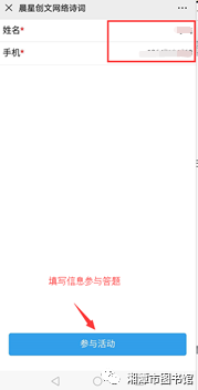 3.参赛要求:所有参与答题读者填写参赛姓名、手机号,获奖者凭手机号到图书馆领取礼品。注册步骤如下: