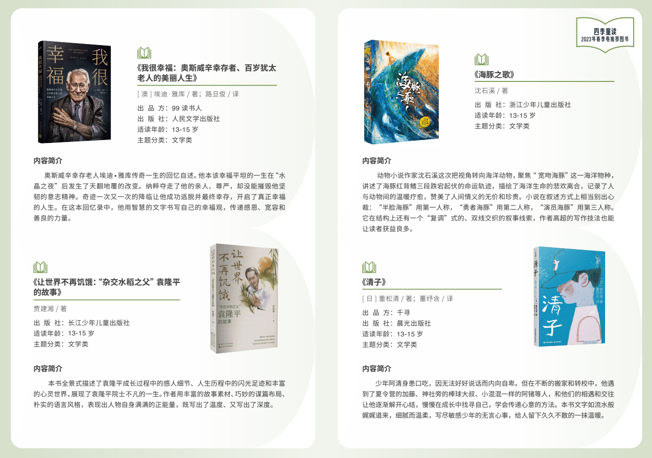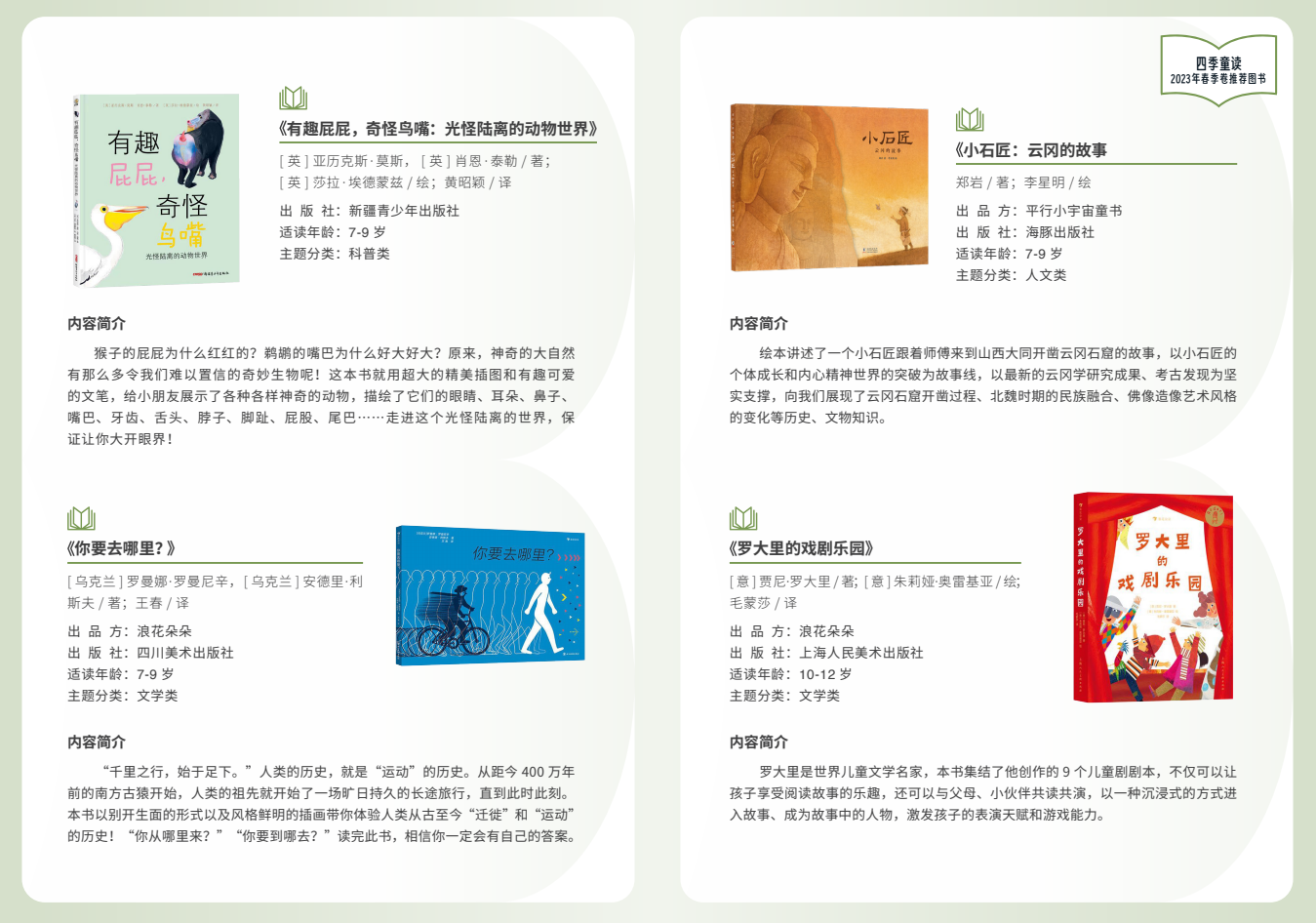 附:“四季童读”春季卷推荐书单(图片由国家图书馆提供)