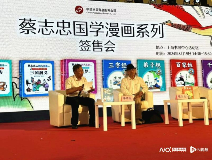 近日,由著名漫画家蔡志忠联合现代出版社共同举办的“蔡志忠国学漫画”书系系列签售会在2024上海书展期间举办。该书系囊括“蔡志忠漫画四大名著·中英文对照彩色版”系列的《西游记》《红楼梦》《三国演义》《水浒传》,以及“蔡志忠漫画蒙学经典”系列《三字经》《百家姓》《千字文》《弟子规》等。现代出版社社长、总编辑申作宏出席并讲话。