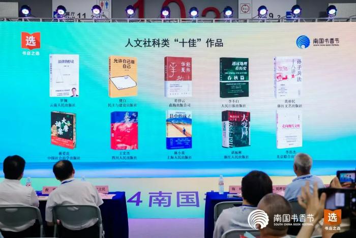 8月16日,由中国书刊发行业协会、韬奋基金会、南国书香节组委会主办,广东省出版集团有限公司、广东省书报刊发行业协会、北京开卷信息技术有限公司协办,广东新华发行集团股份有限公司,北京蠹鱼文化科技有限公司承办的第六届“全民阅读·书店之选”十佳作品发布会在南国书香节成功举办。本次“十佳”作品发布会是“全民阅读·书店之选”活动与南国书香节合作,双方共推两大品牌阅读推广活动在读者及行业的影响力上到一个新台阶。 活动现场,嘉宾依次揭晓五大类“十佳”作品入选名单。今年入选的50部作品,延续了往届“十佳”作品品质阅读要求,紧贴时势,包罗万象,不乏“新质生产力”等热点话题。同时,我们也很欣喜的看到,在儿童文学、少儿科普领域,涌现出不少新生代原创作者。 活动现场,“十佳”作品出版单位代表和作者来到了现场,中国书刊发行业协会理事长艾立民、韬奋基金会副秘书长陈琦、广东省委宣传部副部长、省新闻出版局(省版权局)局长倪谦、广东新华发行集团股份有限公司董事长蒋鸣涛为这些单位颁发了“十佳”作品证书。 即日起,“全民阅读·书店之选”十佳作品全国联展将在全国800多家线下实体书店和100多家线上书店同步专区展示,把十佳图书带到读者的身边,让读者随时能与好书不期而遇。 “全民阅读·书店之选”活动由千家书店共同推选极具有年度关注价值、备受书店认同的中文原创新书。活动集全民阅读、书单推选和书店营销三位一体,落实全民阅读在更广大范围的推动和普及。