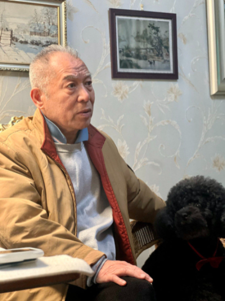 梁晓声在家中接受记者专访,小狗“皮皮”在一旁安静聆听。新华每日电讯记者吉玲摄