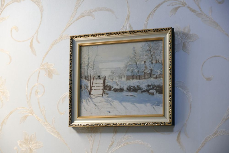 梁晓声书房墙上挂的风景画和托尔斯泰画像。李依桦摄
