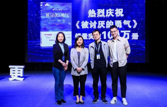 现场分享嘉宾合影。李然 摄 近日,由机械工业出版社和媛创文化共同主办的“纪念阿德勒诞辰150周年暨《被讨厌的勇气》读书会”在北京77剧场举行。机械工业出版社副社长陈海娟,新浪读书COO孙斌,十点读书公共事务及大客户中心高级总监张铭泉,媛创文化ceo、超级演说家总冠军刘媛媛出席并做主题分享。 《被讨厌的勇气》 岸见一郎 古贺史健 著 机械工业出版社 《被讨厌的勇气》是机械工业出版社出版的心理领域畅销书。从出版至今,总销量已经达到了100万册。它以独特的对话体,展现了一名深陷自卑、无能与不幸福的青年,与一名哲人的对话。两人展开了你来我往的思考和辩论,在一夜一夜过去后,青年开始领悟,原来“所谓的自由,就是要有被别人讨厌的勇气”。 读书会圆桌分享环节。李然 摄 圆桌分享环节,时间知道创始人闫鹏、有书编辑王瑛娜、机械工业出版社编辑李健鹏以及读者代表,从四个不同的视角,对读者们感兴趣的问题和书中所提观点进行了探讨。当天,读者代表、媒体代表200余人参加读书会。此外,活动还在多家平台同步直播。