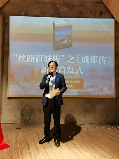 2021年5月26日下午,中国外文局新星出版社在成都方所书店举办“丝路百城传”之《成都传》新书首发式。中国外文局副局长陆彩荣,新星出版社社长马汝军,中共成都市委宣传部副部长、市委外宣办(市政府新闻办)主任丛峰,中共成都市锦江区委常委、宣传部部长邱长宝,《成都传:熊猫家园诗歌殿堂》作者谭平等众多嘉宾共同出席了首发式。